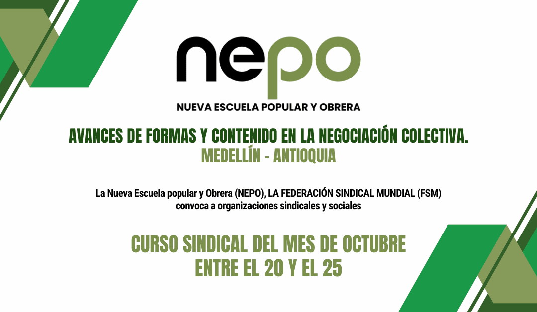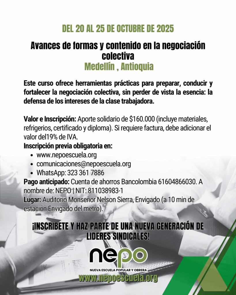 • Convocatoria: Avances de formas y contenido en la negociación colectiva – Medellín, del 20 al 25 de Octubre.