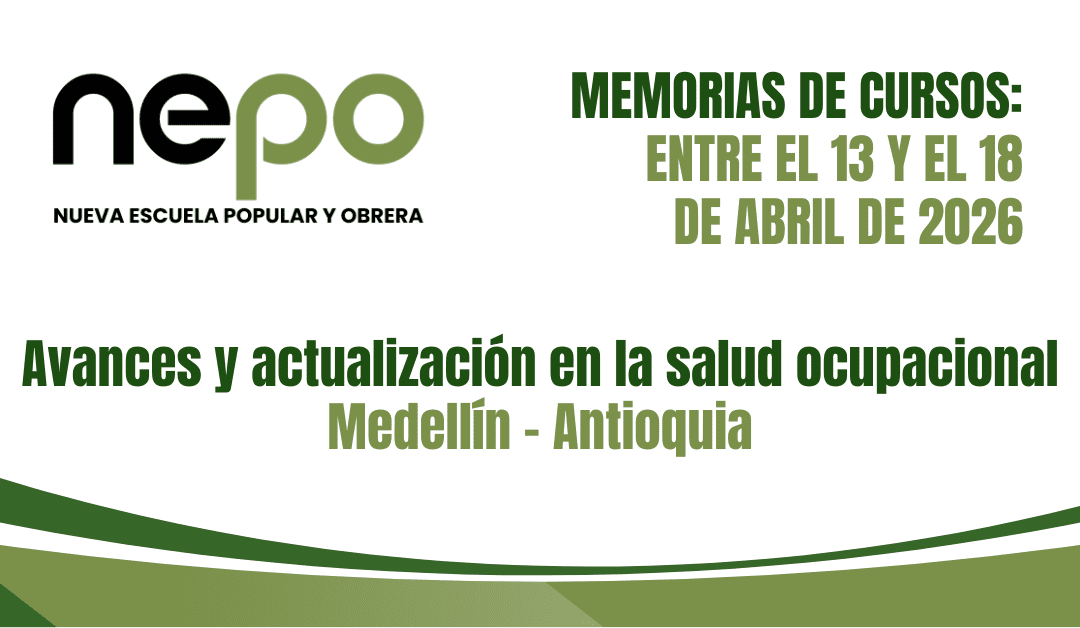 La Nueva Escuela popular y Obrera NEPO, LA FEDERACIÓN SINDICAL MUNDIAL – FSM- convoca a organizaciones sindicales y sociales al CURSO “Avances y actualización en la salud ocupacional” que realizaremos de manera presencial y sincrónica (online) entre 13 y el 18 de Abril de 2026 en la ciudad de Medellín.