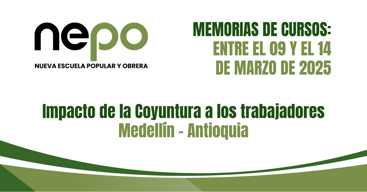PRESENTACIÓN La Nueva Escuela popular y Obrera NEPO, LA FEDERACIÓN SINDICAL MUNDIAL – FSM- convoco a organizaciones sindicales y sociales al CURSO “Impacto de la Coyuntura a los trabajadores” que se realizo de manera presencial entre 9 y el 14 de Marzo de 2026 en la...